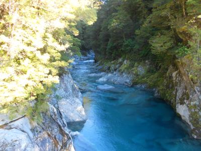Nachdem wir total früh aufgewacht sind und wieder einmal am See gefrühstückt haben, machen wir uns jetzt auf ins Glacier Country. Auf dem Weg passieren wir Haast und stoppen dort, um uns die berühmten Wasserfälle anzusehen und die Blue Pools zu betrachten, die aber heute gar nicht mal so blau sind.