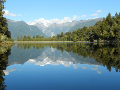 Der Rob Roy Glacier ist um weiten schöner, auch wenn der Zugang schwieriger ist. Dafür hat die Fox Glacier Region noch etwas zu bieten, nämlich Lake Matherson. Dieser See bietet an schönen Tagen eine unglaubliche Spiegelung der Southern Alps. Als wir ankommen, sieht es allerdings nicht so gut aus. Trotzdem laufen wir um den See herum, was ca. 1 ½ Stunden dauert und das Wasser des Sees beruhigt sich wieder ein wenig und ich kann doch noch ein paar Spiegelfotos machen.
