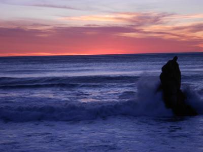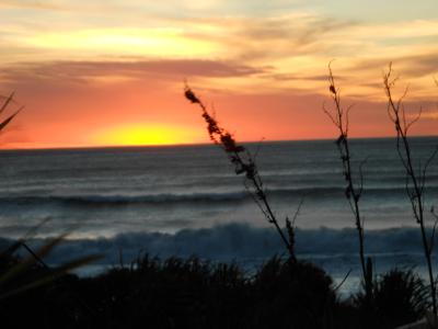 Wir wachen früh auf, denn ich habe geplant Domi heute anzurufen (mit Erfolg!:)) Nachdem wir am Strand gefrühstückt haben, stellen wir mit Entsetzen fest, dass das Licht von Tuatara die ganze Zeit an war und das mag der Gute bekanntlich gar nicht. Wir versuchen erst, Tuatara durchs Anrollen zu Starten, aber mit wenig Erfolg, der Gute braucht eine Diät! Allerdings sind wir ja seit nun genau 20 Tagen AA Mitglied, also ruft Hanna an und ein netter Mann kommt, um uns zu jumpstarten. Wir fahren eine halbe Stunde durch Hokitika, damit sich unsere Batterie wieder auflädt und schlendern dann durch die Geschäfte. Hokitika ist die Stadt, um Jade, Paua und anderes Kunstwerk zu kaufen, also erstehen wir einige Mitbringsel für die Lieben daheim und begeben uns dann in die Library, um unsere Fähre auf die Nordinsel zu buchen, die wir schon nächste Woche nehmen. Wir vertrödeln ein wenig Zeit und machen uns dann auf zu den Pancake Rocks in Punakaki. Durch eine Laune der Natur haben sich dort die Steine in Lagen aufgebaut, so dass sie aussehen, wie ein Stapel Pfannekuchen. Allerdings schaffen wir es gar nicht so weit, denn die Sonne geht schon vorher unter und wir halten mehrmals am Straßenrand an, weil der Sonnenuntergang zu schön ist, um weiter zu fahren.