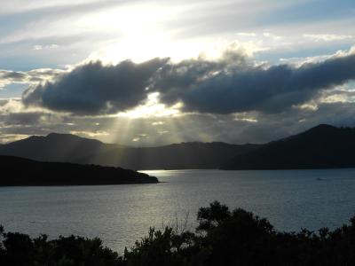 Der Tag fängt super an! Nachdem wir verwarnt wurde, denn wir haben unsere Auto versehentlicher Weise auf dem falschen Platz geparkt, fahren wir weiter und der gute Tuatara ist irgendwie nicht so er selbst heute. Schon die ganze Zeit macht er Mucken und dann an einem Hang macht er nicht mehr mit und der Motor geht aus und wir rollen rückwärts. Ich schalte nicht schnell genug von dem Schock und rolle in den Graben, aber so richtig schön. Hanna klettert auf ihrer Seite raus und versucht zu schieben, denn ihre Seite steckt nach Versuchen hinauszukommen jetzt vollständig im Graben und nah an einer Felswand. Sie versucht zu schieben, aber auch das klappt nicht. Wir müssen ziemlich hilflos ausgesehen haben, denn das erste Auto hält sofort an und natürlich hat der gut vorbereitete Mann ein Seil dabei (es scheint jeder Kiwi hat so was im Kofferraum) und versucht uns rauszuziehen. Leider ist der gute Tuatara nicht gerade der leichteste und es klappt nicht so gut. Aber das nächste Auto stoppt natürlich auch und der nächste hilfreiche Mann mit Seil muss her und mit vereinter Kraft ziehen die beiden Autos unseres aus dem Graben. Im Nachhinein ist es eigentlich ziemlich lustig, vor allen Dingen, weil Hanna und ich jetzt quitt sind und Jeder einmal einen Graben mitgenommen hat. Wir fahren allerdings lieber vorsichtshalber mal in die Werkstatt. Allerdings macht die erst um neun auf und so sitzen wir eine Stunde im Auto und vertrödeln unsere Zeit mit Frühstück. Als der gute Mann dann endlich kommt, reicht ein kurzer Blick, um zu sagen, dass alles gut ist, wir aber dringend einen Ölwechsel brauchen. Wir beschließen nach Picton zu fahren und gehen dort in die Bücherei, um eine Werkstatt zu finden. Nachdem wir einiges erledigt haben, geben wir dann unseren guten Tuatara in die vertrauenswürdigen Hände des Mechanikers und warten. Zum Glück gibt es wenigstens Kaffee, um das Warten einfacher zu machen. Nach einer Weile ist der Gute dann wieder vollkommen in seiner alten Form und wir machen einen Termin, um morgen auch noch die Warrant of Fitness (quasi den TÜV) für den Lieben zu bekommen, denn der läuft bald aus. Wir wandern noch einen Weile durch eine Bucht, an der ganze Kolonien von Miesmuscheln leben. Ich mache zwei ab, damit Hanna auch mal Muscheln probieren kann, und wir finden zwei schöne Pauamuscheln, die den Weg in unseren Koffer finden werden. Mit dem Sonnenuntergang im Hintergrund fällt es auch wieder leichter zu lachen, nach einem ziemlich bescheidenen Start in den Tag.