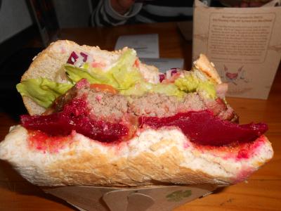 Allein schon das Design des Ladens im amerikanischen Style, die guten biologischen Grundzutaten und der faltbare Burgerhalter (voll cool, das Ding!) lohnen den Besuch.