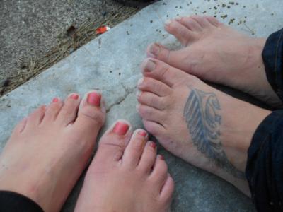 Wir tragen auch meistens keine Schuhe, ganz im Kiwistyle, so sehen unsere Füße auch von unten aus. Irgendwann wird es dann doch kalt und wir gehen zum Auto, um uns umzuziehen (schon praktisch, wenn man immer alles dabei hat!) Wir vertrödeln noch ein wenig Zeit, finden ein cooles Seil an einem Baum, um sich über den See zu schwingen und spaßen ein wenig rum.