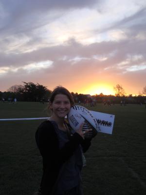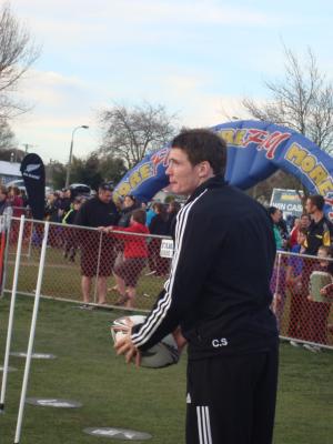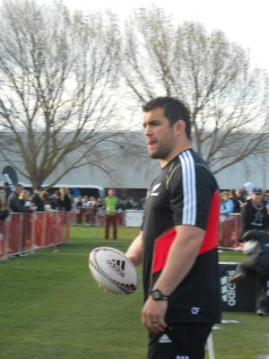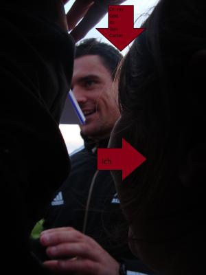 Ach Dan Carter ist übrigens der Kicker, der ist einfach Yummy, aber die Jungs hier hassen ihn. Es ist auch immer das Selbe, es macht keinen Unterschied, welcher Sport es ist…Aber ich hab sogar mit den Jungs Rugby gespielt, quasi…Es gab so einen Parcours, denn man ablaufen konnte und dann Bälle zu den Spielern geworfen hat und so was. Man konnte auch getacklet werden, aber dass hab ich zum Glück umgehen können.