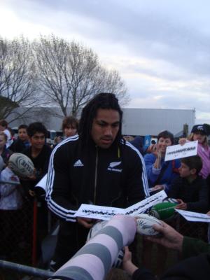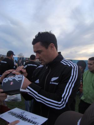 Und der Rugbyworld Cup hat begonnen!!! Ich werde noch zum Fan, ich hab bis jetzt jedes Spiel der All Blacks gesehen und nach ein paar andere, z. B. Ireland gegen Australien. Ich hab zwar noch nicht alle Regeln verstanden, aber Hanna und ich haben beschlossen, beim nächsten Spiel in den Pub zu gehen und wir hoffen, dass wir irgendjemand Nettes finden, der uns alles erklärt, denn leider ist es ein bisschen komplexer als 30 Kerle prügeln sich um einen Ball. Aber gestern waren dann die All Blacks in Christchurch, leider nur ein kurzer Besuch, denn wir haben kein Stadion mehr. Aber jetzt hab ich einen Dan Carter Ball :-)))( und ich hab ihn angefasst, Zwilling. Ach und Colin Slade hab ich umarmt, dass ist der nächste Kerl)
