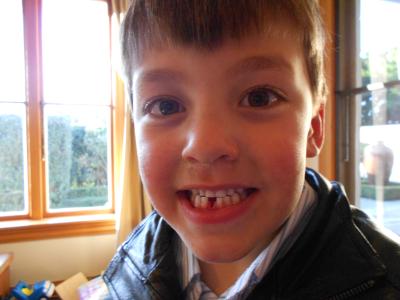 Und außerdem bekomm ich auch all die schönen Kindermomente mit, so wie Bens ersten Zahnverlust, ich hab einen schöne Geschichte über die Zahnfee erfunden oder Barty erste vollständige Sätze.